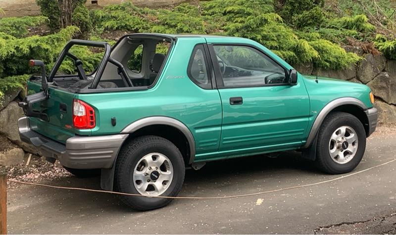 2000 Isuzu Amigo 2Dr V6 5 spd, 1/2 convertible 4X4 sport utility vehicle. Getting a New Top and tires, just completed New Brakes, New clutch, AC service, New fluids & so on... so you get the idea. Straight and rust free body, options include but are not limited to pop up Moon Roof, power windows-mirrors-locks-steering-brakes, tilt steering wheel, air conditioning, ABS brakes, Alloy wheels, cloth front buckets with center console, rear split fold down cloth seats. These are getting SO DIFFICULT to find and they are such a versatile vehicle!!! They make great tow behind rigs or just a really nice Jeep alternative. CarFax shows west coast history! This vehicle was Donated to KMHD radio and that's where we purchased it, so your purchase indirectly supports a great local cause! We don't anticipate this near one of a kind vehicle to last very long. So if you are interested please let us know and we can put the finishing touches on to your specifications??? Engine has 150k Chassis 220K . Come see our Warehouse location, shop out of the weather in our auto and truck warehouse! We show by appointment so call ahead of time!! Visit our website and view the free CarFax at yournextridepdx.com We specialize in affordable, quality cars with a lot of life left in them. With 80 years of combined experience and expertise, let Dan and Craig help you find ''Your Next Ride''. Tap the icon for other ads by this seller to see more inventory or go to our website at:(yournextridepdx.c